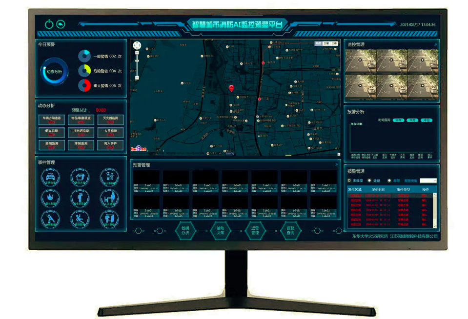 根據當前學生密集場所實際,按照全過程且實時的智能化、規范化、精細化管理的目標要求,開發建設監控平臺,統覽消防安全態勢感知,實現智慧消防監管。