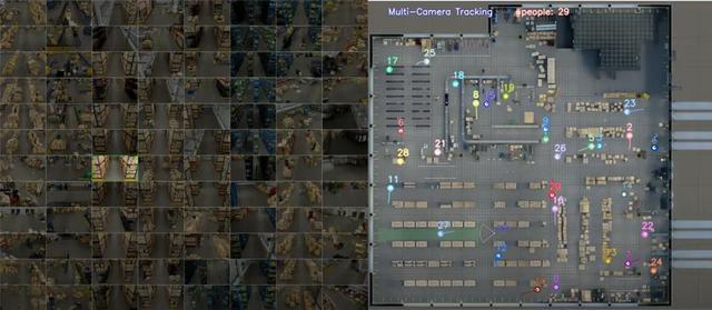 圖 1 是一個實時位置系統示例。在一個 100 個攝像頭覆蓋的 10 萬平方英尺倉庫空間內,每個人的位置都可以在倉庫平面圖上進行追蹤。這樣的系統建立在上述通過正確攝像頭校準來實現的核心能力基礎上。