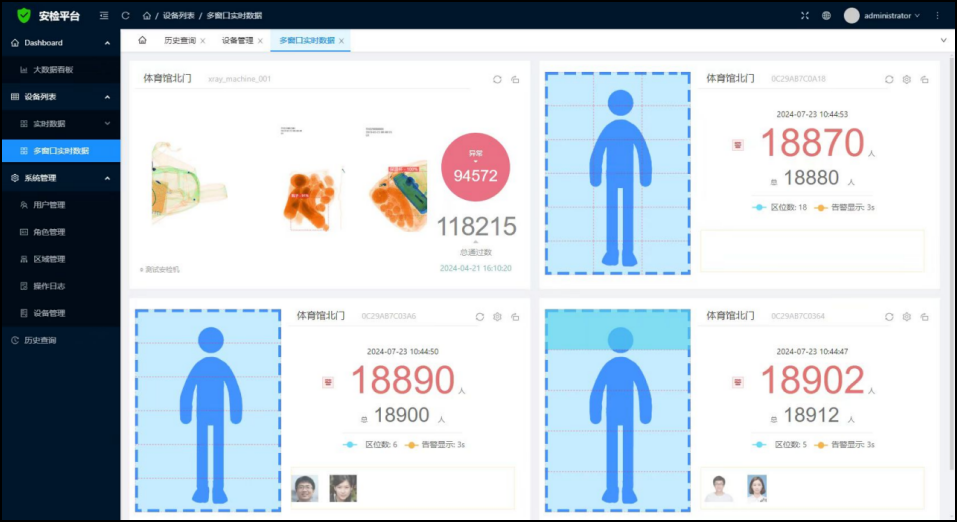 實時報警上報 | 安檢機、安檢門等設(shè)備報警的實時上報、支持設(shè)備的離線提醒。 |