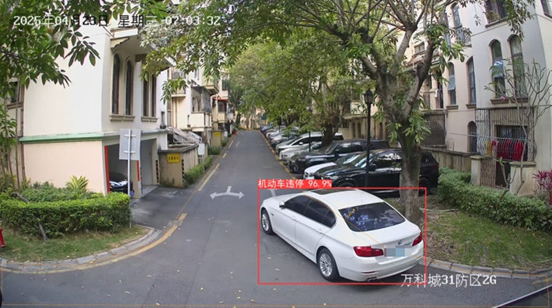 袁戟介紹,目前萬科城小區的AI系統已接入18種智能檢測場景。這意味著,一旦發生汽車違停、老人摔倒、垃圾堆積、周界圍墻入侵、樓內產生明火、電動車進電梯等異常情況,系統都能自動識別并發出預警。為了保障系統運行精準可靠,后臺持續對準確率、召回率、誤報率、漏報率等核心指標進行評估,動態優化算法。
